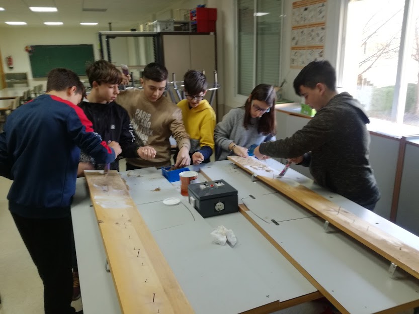 A continuación los alumnos han realizado un minucioso trabajo de taller, abriendo un pequeño agujero en cada pelota.